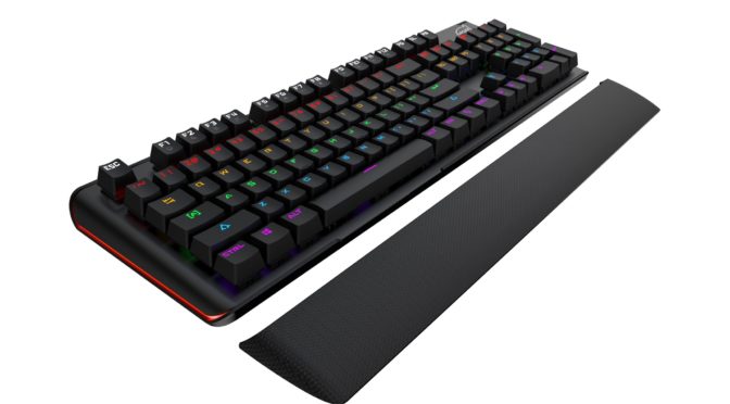 Teclado Mecânico Predator – Excelente opção para jogos, o lançamento traz um novo conceito de Switch à laser e torna as ações de comando muito mais rápidas. O Teclado Mecânico Predator tem opção de descanso de pulso removível, iluminação LED RGB com 8 modos e 104 teclas, sendo 12 teclas multimídia acionadas pela função FN. Compatível com Windows XP/Vista/7/8, tem cabo de 1,80 m e configurações USB 2.0 e ABNT2. Preço sugerido R$ 299,90.