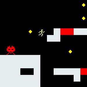 Colete pecinhas douradas espalhadas pelo cenário para aumentar sua pontuação, mas se cuide sempre para não ficar preso pelo cenário que se move lentamente ou para não cair em abismos ou em lava.